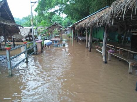 จุดผ่านแดนถาวรบ้านคกไผ่ อำเภอปากชม จังหวัดเลย ผู้ค้าริมแม่น้ำโขงพากันเร่งขนของขึ้นไปไว้ในที่สูง หลังจากซุ้มริมน้ำแม่น้ำโขง จมไปกว่า 10 หลัง และน้ำเริ่มเอ่อขึ้นมาถึงพื้นทางเดิน นายชัยวัฒน์ ชื่นโกสุม ผู้ว่าราชการจังหวัดเลย กำชับนายอำเภอเชียงคานและนายอำเภอปากชม เฝ้าระวังแม่น้ำโขงล้นตลิ่ง พร้อมแจ้งเตือนประชาชนริมฝั่งเตรียมรับมือ เนื่องจากขณะนี้มีพื้นที่บางส่วนน้ำเอ่อท่วมแล้วของอำเภอเชียงคาน ได้แก่ บ้านนาจาน ต.ปากตม โดยแม่น้ำโขงที่ไหลไปตามลำน้ำสาขา เช่น ลำน้ำฮวย ลำน้ำชม แม่น้ำเหือง แม่น้ำเลย ทำให้บางช่วงน้ำหนุนเข้าท่วมพื้นที่ราบลุ่มริมฝั่งหลายหมู่บ้าน ด้านนางจันทนา เลขะวัฒนะ หัวหน้าศูนย์สำรวจอุกทกวิทยาที่ 8 อ.เชียงคาน จ.เลย เปิดเผย สถานการณ์น้ำแม่น้ำโขง ในอำเภอเชียงคาน ปริมาณน้ำยังคงเพิ่มขึ้นจากเมื่อวาน เช้านี้ อยู่ที่ 15 เมตร เฉลี่ยน้ำขึ้นประมาณชั่วโมงละ 4-5 เซนติเมตร ขณะจุดวิกฤติอยู่ที่ 16.50 เมตร จึงต้องติดตามทุกระยะ