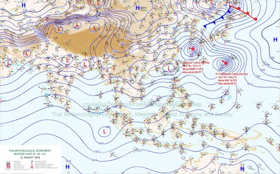 กรมอุตุนิยมวิทยา พยากรณ์อากาศ 24 ชั่วโมงข้างหน้า ประเทศไทยยังคงมีฝนตกหนัก บางพื้นที่บริเวณภาคเหนือ ภาคตะวันออกเฉียงเหนือตอนบน ภาคตะวันออก และ ภาคใต้ฝั่งตะวันตก ขอให้ประชาชนในบริเวณดังกล่าวระวังอันตรายจากฝนตกหนัก และฝนที่ตกสะสม ที่ทำให้เกิดน้ำท่วมฉับพลัน น้ำป่าไหลหลากไว้ด้วย สำหรับทะเล อันดามันมีคลื่นสูงประมาณ 2 เมตร บริเวณที่มีฝนฟ้าคะนองทะเลมีคลื่นสูงมากกว่า 2 เมตร ส่วนอ่าวไทยตอนบนมีคลื่นสูง 1-2 เมตร ขอให้ชาวเรือเดินเรือด้วยความระมัดระวัง สำหรับกรุงเทพมหานครและปริมณฑล มีเมฆเป็นส่วนมาก กับมีฝนฟ้าคะนอง ร้อยละ 60 ของพื้นที่ อนึ่ง ผู้ที่จะเดินทางไปตอนใต้ของประเทศเกาหลี และตอนใต้ของประเทศญี่ปุ่น ขอให้ ตรวจสอบสภาพอากาศก่อนออกเดินทางด้วย เนื่องจากมีพายุไต้ฝุ่น"ซูลิก" (SOULIK) กำลังเคลื่อนผ่านบริเวณดังกล่าว