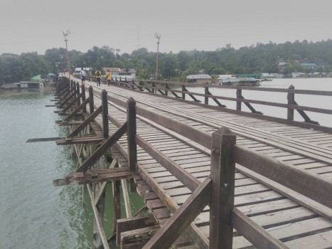 นายปกรณ์ กรรณวัลลี นายอำเภอสังขละบุรี จ.กาญจนบุรี เดินทางมาตรวจสอบความมั่นคงแข็งแรงของโครงสร้างสะพานมอญ เนื่องจากวันพรุ่งนี้ (23ส.ค.) เขื่อนวชิราลงกรณ จะระบายน้ำเพิ่มขึ้น จากปกติวันละ 43 ล้านลูกบาศก์เมตรต่อวินาที เพิ่มเป็น 53 ล้านลูกบาศก์เมตรต่อวินาที เพื่อเตรียมรับปริมาณน้ำที่จะเพิ่มขึ้นจากฝนที่ยังคงตก อย่างต่อเนื่องบริเวณเหนือเขื่อน ส่วนพื้นที่ท้ายน้ำตั้งแต่ อ.ทองผาภูมิ อ.ไทรโยค อ.เมืองกาญจนบุรี พบว่าระดับน้ำ ในแม่น้ำแควน้อยเริ่มเอ่อล้นตลิ่งเข้าท่วมพื้นที่สวนสาธารณะ บริเวณท่าน้ำเทศบาล ทองผาภูมิ ผู้ประกอบการรีสอร์ต แพพัก ต้องยกสิ่งของขึ้นที่สูงเพื่อหนีน้ำ และเตรียม เชือกขนาดใหญ่มาเตรียมมัดแพ เพื่อเพิ่มความแข็งแรงรองรับระดับน้ำและกระแสน้ำ ที่เพิ่มขึ้น ( ขอบคุณภาพจาก FB. คนเมืองกาญจน์)