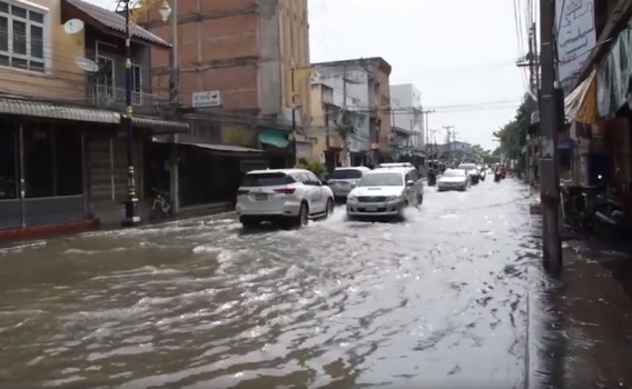 แม่น้ำเพชรบุรี ไหลเอ่อล้นตลิ่งแม่น้ำเพชรบุรี เข้าท่วมถนนคนเดิน ข้างจวนผู้ว่าราชการจังหวัดเพชรบุรี ถนนหลังวัดน้อย (ไชยสุรินทร์) ถนนคลองกระแชง ถนนดำเนินเกษม ต.คลองกระแชง ถนนตลาดริมแม่น้ำเพชรบุรี ถนนพานิชเจริญ ถนนพงษ์สุริยา ถนนสุรินทร์ฤาไชย ต.ท่าราบ และพื้นที่ใกล้เคียง ได้แก่ ชุมชนนามอญ ซึ่งเป็นพื้นที่ติดต่อระหว่าง เทศบาลเมืองเพชรบุรี กับ ต.หนองโสน อ.เมืองเพชรบุรี ระดับน้ำสูง 10-30 เซนติเมตร และมีแนวโน้มจะสูงขึ้นต่อเนื่อง เทศบาลเมืองเพชรบุรีนำเครื่องสูบน้ำขนาดใหญ่ ช่วยเร่งระบายน้ำตามถนน นายยุทธพล อังกินันทน์ อดีต ส.ส.เพชรบุรี ในฐานะกรรมการเครือข่ายภาคประชาชนแก้ไขปัญหาน้ำท่วมจังหวัดเพชรบุรี ประสาน นายนภดล นิยมค้า หรือผู้ใหญ่ตั้น บ้านแหลม เจ้าของ เครื่องสูบน้ำระบบเทอร์โบเจ็ต ที่ไปสูบน้ำช่วยทีมหมูป่าอะคาเดมีแม่สาย นำเครื่องสูบน้ำมาช่วยระบายน้ำออกจากท่อระบายน้ำ ในเขตเทศบาล ลงสู่แม่น้ำเพชรบุรี โดยนายนภดล นำเครื่องสูบน้ำกำลัง 10 แรงม้า สามารถสูบน้ำได้ 1,000 ลูกบาศก์เมตรต่อชั่วโมง มาสูบน้ำที่บ่อพักเชิงสะพานจอมเกล้า ฝั่งตำบลท่าราบ อ.เมืองเพชรบุรี คู่กับเครื่องสูบน้ำของเทศบาลเมืองเพชรบุรี นภดล นิยมค้า เปิดเผยว่า นำเครื่องสูบน้ำระบบเทอร์โบเจ็ต มาช่วยสูบระบายน้ำ 9 ตัว ติดตั้งที่ ต.บ้านหม้อ อ.เมืองเพชรบุรี 4 ตัว , เขตเทศบาลเมืองเพชรบุรี 4 ตัว และที่บ้านนามอญ หมู่ 2 ต.หนองโสน อ.เมืองเพชรบุรี อีก 1 ตัว เชื่อมั่นว่าจะเป็นส่วนหนึ่งในการช่วยเหลือชาวเพชรให้พ้นวิกฤตน้ำท่วมได้โดยเร็ว