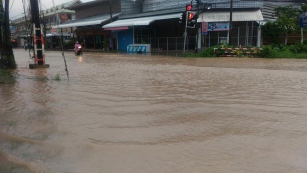 ฝนที่ตกต่อเนื่องตั้งแต่เมื่อคืน ทำให้น้ำท่วมขังตามถนนหลายสายในเขตเทศบาลเมืองน่าน เช้านี้ เนื่องจากระบายน้ำไม่ทัน บางเส้นทางต้องปิดการจราจรชั่วคราว โดยเฉพาะบริเวณ สี่แยกช้างเผือก ต.ในเวียง อ.เมือง ซึ่งเป็นเส้นทางที่จะไปสนามบินน่านและโรงพยาบาลน่าน ผู้ประกอบการร้านค้าและบ้านเรือนมีน้ำท่วมขังสูง 30-50 เซนติเมตร การจราจรแยกดังกล่าวติดขัด นอกจากนี้ ถนนสายเลี่ยงเมืองปางคำ อ.เมือง น้ำล้นคลองระบายน้ำ ไหลเข้าท่วมถนน หลายจุด รวมทั้งบ้านเรือน เจ้าหน้าที่หลายหน่วยงานช่วยกันอำนวยความสะดวกการจราจร และระดมเครื่องสูบน้ำเร่งระบายน้ำตลอดเวลา พร้อมเฝ้าระวังสถานการณ์ในพื้นที่ หลังกรมอุตุนิยมวิทยาแจ้งเตือนพื้นที่เสี่ยงรับมือผลกระทบจากฝนตกหนักในระยะนี้ อาจเกิดน้ำป่าไหลหลากดินโคลนถล่ม ได้แก่ พื้นที่บ้านก้อ อ.แม่จริม, บ้านสบมาง อ.บ่อเกลือ และบ้านปางสา อ.เวียงสา เนื่องจากเป็นพื้นที่วัดปริมาณฝนตกสะสม เกิน 100 มิลลิเมตร
