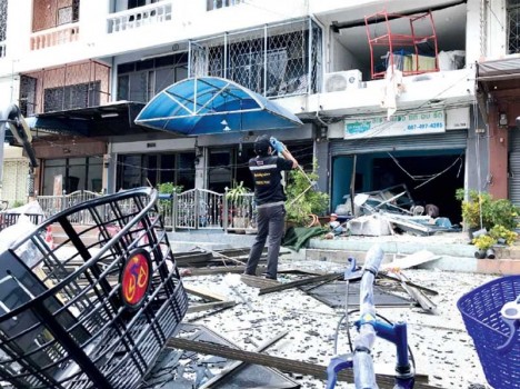 เจ้าหน้าที่พิสูจน์หลักฐาน พร้อมเจ้าหน้าที่ฝ่ายโยธาเขตดินแดง เข้าตรวจสอบตึกแถว อาคารพาณิชย์ ซึ่งเปิดเป็นร้านซักรีดชื่อ Otteri Wash & Dry ปากซอยอินทามระ 36 หลังเกิดอุบัติเหตุแก๊สที่ใช้กับเครื่องอบผ้าระเบิดขึ้นเมื่อกลางดึก ทำให้มีผู้บาดเจ็บ 9 ราย โดยพบว่าตัวอาคารเสียหายอย่างหนัก และแรงระเบิดยังสร้างความเสียหายไปถึง ตึกแถวข้างเคียงรวม 7 คูหา เจ้าหน้าที่เข้าสำรวจความเสียหาย และเก็บรวบรวมพยาน หลักฐานเพิ่มเติม นายอาฤทธิ์ ศรีทอง ผู้อำนวยการเขตดินแดง เปิดเผยว่า วิศวกรฝ่ายโยธาตรวจพบว่า เสาด้านหลังของอาคารเกิดเหตุหักขาด 3 ต้น ทำให้อาคารทรุดตัวได้ จึงประกาศห้าม เข้าไปภายในอาคารเกิดเหตุ และอาคารข้างเคียงรวม 7 คูหา เพื่อป้องกันอันตราย