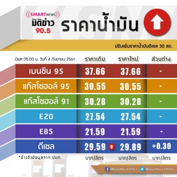 บริษัท ปตท.น้ำมันและการค้าปลีก จำกัด และบริษัท บางจาก คอร์ปอเรชั่น จำกัด (มหาชน) ประกาศปรับขึ้นราคาขายปลีกน้ำมันดีเซล 30 สตางค์/ลิตร โดยขยับขึ้นไปอยู่ที่ 29.89 บาท/ลิตร (ราคานี้ยังไม่รวมภาษีท้องที่ของแต่ละจังหวัด) มีผลตั้งแต่พรุ่งนี้ (4 ก.ย.2561) เวลา 05.00 น. ขณะที่กลุ่มเบนซิน-โซฮอล ราคาคงเดิม