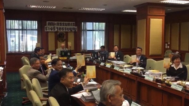 วันนี้ (11 ก.ย.) คณะกรรมการร่างรัฐธรรมนูญ หรือ กรธ.ประชุมนัดสุดท้าย ก่อนจะครบ กำหนดการทำหน้าที่ โดยมีนายมีชัย ฤชุพันธุ์ ประธาน กรธ.ทำหน้าที่ประธานการประชุม ทั้งนี้ กรธ.จัดพิมพ์หนังสือ “ความในใจของคณะกรรมการร่างรัฐธรรมนูญ 2560” จำนวน 234 หน้า เป็นเนื้อหาที่ กรธ.ทุกคน ถ่ายทอดผ่านตัวหนังสือเพื่อเป็นการบันทึกเรื่องราว บอกเล่าความในใจ ความทรงจำ และประสบการณ์ในการทำหน้าที่ โดยนายมีชัย ฤชุพันธ์ เขียนเรื่อง “บันทึกไว้กันลืม” ที่บอกเล่าถึงการเข้ามาร่างรัฐธรรมนูญ หลังการปฏิวัติของ คสช. เมื่อวันที่ 22 พฤษภาคม 2557 ที่ได้ปฏิเสธและเสนอให้นายบวรศักดิ์ อุวรรณโณ เข้ามาทำหน้าที่รอบแรก จนร่างรัฐธรรมนูญฉบับแรกถูกคว่ำ จนรอบที่ 2 ทำให้ต้องรับหน้าที่ เพราะนายกรัฐมนตรีร้องขอ เพราะไม่สามารถปฏิเสธได้ พร้อมชี้แจงกติกาใหม่ที่ถูกกำหนดไว้ในรัฐธรรมนูญ อาทิ การเลือกตั้งด้วยบัตรใบเดียว ที่มาของวุฒิสภา 250 คน ทั้งนี้ หลังการประชุมนัดสุดท้าย กรธ.ร่วมถ่ายภาพหมู่เป็นที่ระลึก บริเวณลานพระบรม ราชานุสาวรีย์ รัชกาลที่ 7 อาคารรัฐสภา