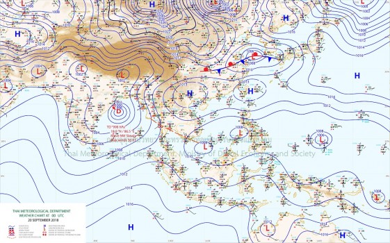 กรมอุตนิยมวิทยา พยากรณ์อากาศ 24 ชั่วโมงข้างหน้า ภาคกลาง ภาคตะวันออก และ ภาคใต้ยังคงมีฝนตกต่อเนื่อง ส่วนภาคเหนือตอนบน และภาคตะวันออกเฉียงเหนือตอนบน มีฝนลดลง ขอให้ประชาชนบริเวณภาคกลาง ภาคตะวันออก และภาคใต้ระวังอันตราย จากฝนที่ตกสะสม ซึ่งจะทำให้เกิดน้ำท่วมฉับพลัน และน้ำป่าไหลหลากไว้ด้วย สำหรับ คลื่นลมบริเวณทะเลอันดามันตอนบน มีคลื่นสูงประมาณ 2 เมตร ขอให้ชาวเรือบริเวณ ดังกล่าวเดินเรือด้วยความระมัดระวัง ส่วนกรุงเทพมหานครและปริมณฑล มีเมฆ เป็นส่วนมาก กับมีฝนฟ้าคะนอง ร้อยละ 40 ของพื้นที่