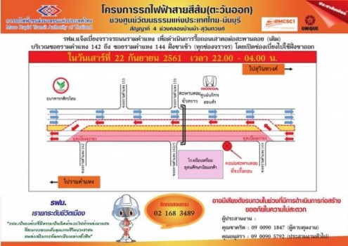 การรถไฟฟ้าขนส่งมวลชนแห่งประเทศไทย หรือ รฟม. แจ้งว่า บริษัท ยูนิค เอ็นจิเนียริ่ง แอนด์ คอนสตรัคชั่น จำกัด (มหาชน) ผู้รับจ้างงานก่อสร้างโครงสร้างทางวิ่งยกระดับ สัญญาที่ 4 ช่วงคลองบ้านม้า-สุวินทวงศ์ โครงการรถไฟฟ้าสายสีส้ม ช่วงศูนย์วัฒนธรรมแห่งประเทศไทย- มีนบุรี มีความจำเป็นต้องเบี่ยงการจราจรบนถนนรามคำแหง เพื่อดำเนินการรื้อถอนเสาตอม่อ สะพานลอย (เดิม) ซึ่งได้ก่อสร้างสะพานลอยชั่วคราวทดแทนบริเวณซอยรามคำแหง 142/1 โดยการรื้อถอนเสาตอม่อดังกล่าวมีการเบี่ยงจราจรดังนี้ วันที่ 22 ก.ย. เวลา 22.00-04.00 น. เบี่ยงจราจรถนนรามคำแหงฝั่งขาเข้าบริเวณ ซอยรามคำแหง 142 ถึงซอยรามคำแหง 144 (ทุกช่องจราจร) ทั้งนี้ผู้ใช้เส้นทางยังคงสัญจรได้ โดยจะทำการเปิดช่องเบี่ยงให้ไปใช้ฝั่งขาออก วันที่ 23 ก.ย.61 เวลา 22.00-04.00 น. เบี่ยงจราจรถนนรามคำแหงฝั่งขาออกบริเวณ ซอยรามคำแหง 153 -157 (ทุกช่องจราจร) ทั้งนี้ผู้ใช้เส้นทางยังคงสัญจรได้โดยจะทำการเปิดช่องเบี่ยงให้ไปใช้ฝั่งขาเข้า โดยการเบี่ยง จราจรอาจทำให้ผู้ใช้เส้นทางไม่ได้รับความสะดวก และอาจมีเสียงดังรบกวนในช่วงที่มีการ ดำเนินการก่อสร้าง รฟม.ต้องขออภัยมา ณ โอกาสนี้