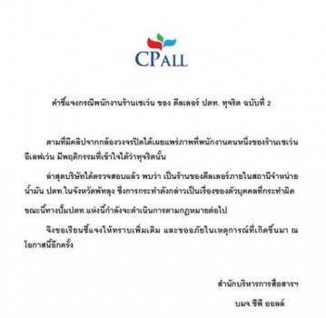 กรณีที่ผู้ใช้เฟซบุ๊ก Suchada Maenduang โพสต์คลิปเพื่อเตือนภัย พนักงานร้านสะดวกซื้อแห่งหนึ่ง รับธนบัตรใบละ 1,000 บาท จากลูกค้า แต่นำไปซ่อนไว้ใต้เคาน์เตอร์คิดเงิน แล้วบอกลูกค้าว่ารับธนบัตรมาเพียง 100 บาทเท่านั้น จนกลายเป็นที่วิพากษ์วิจารณ์ในโลกโซเชียล ซึ่งสำนักบริหารสื่อสารและประชาสัมพันธ์ บมจ.ซีพี ออลล์ เผยแพร่เอกสารชี้แจง ว่า ตามที่มีคลิปจากกล้องวงจรปิด เผยแพร่ภาพพนักงานคนหนึ่งของร้านเซเว่น อีเลฟเว่น มีพฤติกรรมที่เข้าใจได้ว่า ส่อไปในทางทุจริตนั้น บริษัท ต้องขออภัยเป็นอย่างยิ่งต่อเหตุการณ์ที่เกิดขึ้น และขอเรียนชี้แจงว่า บริษัทไม่ได้นิ่งนอนใจ และกำลังตรวจสอบข้อเท็จจริงอย่างเร่งด่วน และจะดำเนินการลงโทษโดยไล่ออกทันทีที่ตรวจสอบแล้วเสร็จ ทั้งนี้ บริษัทจะพยายามแก้ไขปรับปรุงการกวดขันพนักงานให้รัดกุมยิ่งขึ้น เพื่อป้องกันไม่ให้เกิดเหตุการณ์เช่นนี้อีก ล่าสุด บมจ.ซีพี ออลล์ ออกเเถลงการณ์ฉบับที่ 2 ระบุว่า คำชี้เเจงกรณีพนักงานร้านเซเว่น ของดีลเลอร์ ปตท.ทุจริต ฉบับที่ 2 บริษัทได้ตรวจสอบเเล้วพบว่า เป็นร้านของดีลเลอร์ภายในสถานีจำหน่ายน้ำมัน ปตท.ในจังหวัดพัทลุง ซึ่งการกระทำดังกล่าว เป็นเรื่องตัวบุคคลที่กระทำผิด ขณะนี้ ปั๊มน้ำมัน ปตท.เเห่งนี้ กำลังดำเนินการตามก ฎหมายต่อไป