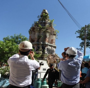 ความคืบหน้าเจดีย์ยักษ์ ภายในวัดพระยาทำวรวิหาร ถ.อรุณอัมรินทร์ เขตบางกอกน้อย กรุงเทพมหานคร ทรุดตัวทับคนงานระหว่างซ่อมบูรณะจนได้รับบาดเจ็บ 8 ราย อาการสาหัส 3 ราย เสียชีวิต 1 ราย เหตุเกิดเมื่อวานนี้ ( 25 ก.ย.) นายอนันต์ ชูโชติ อธิบดีกรมศิลปากร พร้อมนายอารักษ์ สังห์ตกุล อดีตอธิบดีกรมศิลป์ ลงพื้นที่ตรวจสอบรอบบริเวณเจดีย์ต่อจากเมื่อวานนี้ อธิบดีกรมศิลปากร กล่าวว่า ได้หารือกับหน่วยงานที่เกี่ยวข้องว่าจะคุ้มครองอย่างไร พร้อมระดมวิศวกรเพื่อหาแนวทางค้ำยันเจดีย์ไม่ให้เสียหายมากกว่านี้ และจะปฏิสังขรณ์ต่อไป ซึ่งเร่งให้ดำเนินการได้ตั้งแต่วันนี้เป็นต้นไป ยืนยันว่าวิศวกรที่รับงานนี้มีประสบการณ์ ด้านการยกสิ่งปลูกสร้างมาแล้ว แต่คงต้องตรวจสอบรายละเอียดอีกครั้งว่าเหตุเกิดจาก ความประมาท หรือเป็นเหตุสุดวิสัย ตอนนี้เริ่มเห็นชัดแล้วว่ามีบางอย่างที่ไม่ปกติ ด้านนายอารักษ์ สังห์ตกุล อดีตอธิบดีกรมศิลปากร กล่าวว่า ขณะนี้ตัวฐานที่รองรับ องค์เจดีย์มีความลาดเอียง ทำให้มีโอกาสที่จะล้มได้ จึงจะทำการค้ำยันก่อน และค่อย เสริมความแข็งแรง อย่างไรก็ตาม ไม่สามารถคืนสภาพเจดีย์ดังเดิมได้ทั้งหมดแล้ว ต้อง ดำเนินการด้านโครงสร้างทั้งหมด รวมถึงจัดทำรูปปูนปั้นใหม่ให้เหมือนเดิมมากที่สุด เบื้องต้นคาดว่าปัญหาเกิดมาจากอุปกรณ์ระหว่างทำการยกฐานเจดีย์ และเกิดการ ทรุดตัวในเวลาต่อมา ทั้งนี้แม้จะมีการตรวจสอบอุปกรณ์ตลอดเวลา แต่ไม่อาจหา ข้อสรุปได้แน่ชัดว่าสาเหตุเกิดจากอะไร