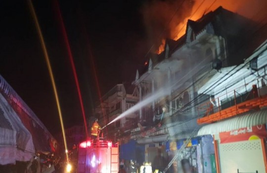 พ.ต.ท.จิรศักดิ์ ศรีธรรม รองผู้กำกับการ (สอบสวน) สภ แม่สอด จ.ตาก ได้รับแจ้ง เมื่อเวลา 02.30 น. เกิดเหตุเพลิงไหม้ตึกแถวภายในตลาดสดพาเจริญ เขตเทศบาลนครแม่สอด ซึ่งเปิดเป็นร้านค้าส่งสินค้ารายใหญ่ จึงไปตรวจสอบที่เกิดเหตุ พบร้านวินัย มาเก็ต, ร้านไป่เฮงค้าส่ง และร้านมุกดาค้าส่ง ปลูกติดกันอยู่ 3 คูหา ถูกไฟโหมลุกไหม้ลามไปทั่วบริเวณ ต้องระดมรถดับเพลิงกว่า 20 คัน เข้าระงับเหตุ เจ้าหน้าที่พยายามฉีดน้ำสกัดไฟ แต่เนื่องจากทั้ง 3 ร้านค้า เต็มไปด้วยพลุ ดอกไม้ไฟ และประทัด ที่เตรียมไว้ขายในช่วงลอยกระทง จึงเป็น เชื้อไฟเป็นอย่างดี ทำให้เพลิงยิ่งลุกไหม้ นายเทิดเกียรติ ชินสรนันท์ นายกเทศมนตรีเทศบาลนครแม่สอด สั่งระดมฉีดน้ำ เพื่อป้องกันไม่ให้ลุกลาม และควบคุมเพลิงได้สำเร็จเมื่อช่วงเช้าวันนี้