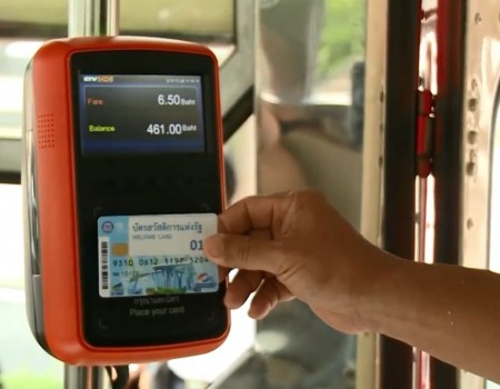 นายประยูร ช่วยแก้ว รองผู้อำนวยการฝ่ายการเดินรถองค์การ รักษาการในตำแหน่งผู้อำนวยการองค์การขนส่งมวลชนกรุงเทพ (ขสมก.) เปิดเผยว่า ขณะนี้ ขสมก.ได้ติดตั้งเครื่องอ่านบัตรโดยสารอิเล็กทรอนิกส์ (E - Ticket) บนรถโดยสารธรรมดา 800 คัน รวม 75 เส้นทาง (เส้นทางรถเมล์ฟรีเดิม) และได้มีการทดสอบระบบแล้ว พบว่ามีความเสถียรสามารถใช้งานได้อย่างมีประสิทธิภาพ จึงพร้อมให้ประชาชนผู้ถือบัตรสวัสดิการแห่งรัฐนำบัตรฯ รุ่นแรก (เวอร์ชั่น 2.0) มาใช้สิทธิ์ขึ้นรถโดยสารดังกล่าว ตั้งแต่วันที่ 15 ตุลาคม 2561 เป็นต้นไป ส่วนผู้ถือบัตรสวัสดิการแห่งรัฐที่นำบัตรฯ ไปลงทะเบียนกับการรถไฟฟ้าขนส่งมวลชนแห่งประเทศไทย (รฟม.) เพื่ออัพเกรดให้เป็นเวอร์ชั่น 2.5 ยังสามารถนำบัตรฯ มาใช้สิทธิ์ขึ้นรถโดยสารดังกล่าวได้ตามปกติ โดยพนักงานเก็บค่าโดยสารจะฉีกคูปองให้กับผู้ถือบัตรฯ เพื่อใช้เป็นหลักฐานในการใช้สิทธิ์ โดยไม่ต้องเสียค่าใช้บริการแต่อย่างใด ทั้งนี้ ผู้ถือบัตรสวัสดิการแห่งรัฐจะต้องนำบัตรฯ มาแตะที่เครื่องอ่านบัตร E - Ticket ที่ติดตั้งบริเวณประตูรถทั้ง 2 ข้าง ทั้งขณะขึ้นและลงรถ เพื่อให้ระบบหักค่าโดยสารออกจากวงเงินในบัตรตามอัตราค่าโดยสารที่กำหนดไว้ รถโดยสารธรรมดาเส้นทางปกติ อัตราค่าโดยสาร 6.50 บาท รถโดยสารธรรมดา ขึ้นทางด่วน อัตราค่าโดยสาร 8.50 บาท รถโดยสารธรรมดา กะสว่าง อัตราค่าโดยสาร 8.00 บาท