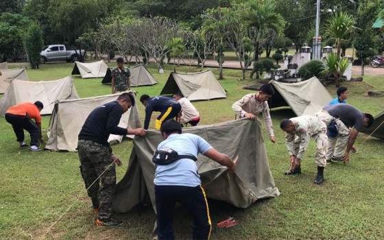นายกองตรีธวัชชัย กงเพชร ผู้บังคับกองร้อยอาสารักษาดินแดนจังหวัดหนองคาย ได้นำเจ้าหน้าที่อาสารักษาดินแดน กางเต้นท์บริเวณสนามหน้าอาคารอำนวยการ ภายในกองร้อยอาสารักษาดินแดน ซึ่งเป็นการอำนวยความสะดวกแก่นักท่องเที่ยวที่ประสงค์จะเดินทางมาท่องเที่ยวชมปรากฏการณ์บั้งไฟพญานาคในช่วงวันออกพรรษา แต่ไม่สามารถหาที่พักได้ เนื่องจากขณะนี้ที่พักทั้งโรงแรม รีสอร์ท ต่างๆ นั้นถูกจับจองเต็มหมดแล้ว ซึ่งที่ผ่านมาก็มีนักท่องเที่ยวแจ้งความประสงค์เข้าพักกางเต้นท์กับทางกองร้อยอยู่เป็นประจำ บางคนนำเต้นท์มากางเองก็มี