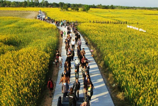 นักท่องเที่ยวจำนวนมากแห่ชม ทุ่งดอกปอเทือง