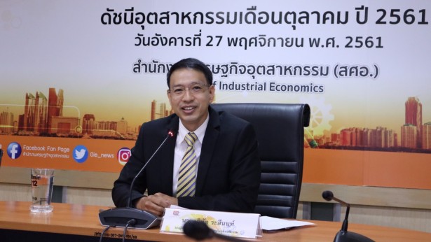 นายอดิทัต วะสีนนท์ รองผู้อำนวยการสำนักงานเศรษฐกิจอุตสาหกรรม (สศอ.) เปิดเผยดัชนีผลผลิตอุตสาหกรรม ( MPI) เดือนตุลาคม 2561 ว่า ดัชนี MPI ขยายตัวร้อยละ 4.08 จากช่วงเดียวกันของปีก่อน ส่งผล 10 เดือนแรกขยายตัวร้อยละ 3.04 อัตราการใช้กำลังการผลิตเดือนตุลาคม 2561 อยู่ที่ร้อยละ 67.75 อุตสาหกรรมสำคัญที่ส่งผลบวก ได้แก่ รถยนต์และเครื่องยนต์ บุหรี่ น้ำตาลทราย น้ำมันปิโตรเลียม และเครื่องปรับอากาศและชิ้นส่วน และคาดว่าตลอดปีนี้ดัชนีผลผลิตอุตสาหกรรมและจีดีพีภาคอุตสาหกรรมจะโตเท่ากันที่ร้อยละ 2.5 นายอดิทัต กล่าวถึงแนวโน้มภาวะอุตสาหกรรมสำคัญปี 2562 ว่า คาดว่าจะขยายตัวต่อเนื่องจากปีนี้ โดยดัชนีผลผลิตอุตสาหกรรมจะโตในช่วงร้อยละ 2.0-3.0 จากปัจจัยสนับสนุนทั้งความชัดเจนการเลือกตั้ง แรงขับเคลื่อนการลงทุนภาครัฐจากความคืบหน้าของโครงการลงทุนสำคัญและการดำเนินงานภายใต้แผนงานพัฒนาเขตเศรษฐกิจพิเศษภาคตะวันออก (อีอีซี) ส่วนปัจจัยเสี่ยง ได้แก่ ความผันผวนของระบบเศรฐษกิจและการเงินโลก ทั้งความไม่แน่นอนมาตรการการค้าของสหรัฐ การชะลอตัวของเศรษฐกิจจีน ความผันผวนของราคาน้ำมัน และความไม่แน่นอนเสถียรภาพทางเศรษฐกิจของประเทศกำลังพัฒนาที่สำคัญ สำหรับอุตสาหกรรมที่จะขยายตัวปีหน้า เช่น อุตสาหกรรมอิเล็กทรอนิกส์ คาดว่าจะมีการผลิตเพิ่มขึ้นเล็กน้อยร้อยละ 0.5 เมื่อเทียบกับช่วงเดียวกันของปีนี้ เนื่องจากความต้องการส่วนประกอบและอุปกรณ์ประกอบของเครื่องคอมพิวเตอร์ที่เพิ่มขึ้นและตามความต้องการของสินค้าอิเล็กทรอนิกส์โลกที่เพิ่มขึ้นอย่างต่อเนื่อง อุตสาหกรรมรถยนต์ คาดว่าจะมีการผลิตรถยนต์ประมาณ 2.2 ล้านคัน เพิ่มขึ้นจากปีนี้ร้อยละ 4.76 เนื่องจากเศรษฐกิจในประเทศจะขยายตัวจากการใช้จ่ายของภาคเอกชนทั้งการบริโภคและการลงทุนที่จะขยายตัวดีขึ้น เนื่องจากเกิดความเชื่อมั่นของนักลงทุนจากเสถียรภาพทางการเมือง ประกอบกับการลงทุนของภาครัฐอย่างต่อเนื่อง และการส่งออก มีแนวโน้มขยายตัวตามอุปสงค์โลก อย่างไรก็ตาม ยังต้องคำนึงถึงผลของสงครามการค้าสหรัฐ-จีน ด้านอุตสาหกรรมอาหาร คาดว่าขยายตัวเมื่อเปรียบเทียบกับช่วงเดียวกันของปีก่อนร้อยละ 4.5 จากปัจจัยบวกอย่างเศรษฐกิจโลกมีแนวโน้มขยายตัวระดับใกล้เคียงปีก่อน ค่าเงินบาทมีแนวโน้มอ่อนค่าด้วยทิศทางดอกเบี้ยขาขึ้นของสหรัฐปี 2562 ประกอบกับแนวโน้มราคาส่งออกสินค้าเกษตรปรับตัวเพิ่มขึ้น อาทิ ข้าว น้ำตาลทราย แป้งมันสำปะหลัง และสับปะรดกระป๋อง รวมทั้งการขยายตัวต่อเนื่องของสินค้าสำคัญ เช่น ไก่สดแช่เย็นแช่แข็ง ไก่แปรรูป และทูน่ากระป