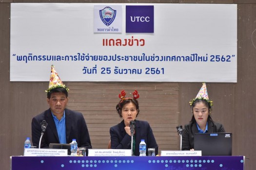 นางเสาวณีย์ ไทยรุ่งโรจน์ อธิการบดีมหาวิทยาลัยหอการค้าไทย เปิดเผยถึงผลสำรวจพฤติกรรมการใช้จ่ายของผู้บริโภคในช่วงเทศกาลปีใหม่จากกลุ่มตัวอย่าง 1,210 ตัวอย่างทั่วประเทศว่า เงินสะพัด 135,279.74 ล้านบาท เติบโต 2.5% หากเทียบกับช่วงเดียวกันของปีก่อน แต่น้อยกว่าการขยายตัวจีดีพีปีนี้อยู่ที่ 4.2% เนื่องจากประชาชนยังระมัดระวังการใช้จ่าย เนื่องจากยังกังวลในเรื่องภาวะเศรษฐกิจ ส่วนการเดินทางเน้นไปเที่ยวในประเทศ 58,689 ล้านบาท ต่างประเทศ 38,386.89 ล้านบาท ซึ่งส่วนใหญ่จะเลี้ยงสังสรรค์ 10,005 ล้านบาท จากที่่ปีก่อนจะเน้นในเรื่องทำบุญ ส่วนปีนี้การทำบุญ รองลงมาเป็นอันดับ 2 มูลค่าใช้จ่ายอยู่ที่ 7,394.86 ล้านบาท และสินค้าอุปโภค-บริโภค 17,418.69 ล้านบาท สินค้าคงทน 2,206 ล้านบาท เช่น รถยนต์ และรถจักรยานยนต์ และสินเค้าฟุ่มเฟือย 1,178.74 ล้านบาท สำหรับสิ่งที่เป็นห่วงในช่วงปีใหม่อันดับแรกเป็นเรื่องอุบัติเหตุบนท้องถนน รองลงมาเป็นเรื่องความปลอดภัยของที่พัก ปัญหาการจราจร อย่างไรก็ตาม เมื่อถามถึงการเดินทางท่องเที่ยวกับนักการเมืองคนไหนมากสุดพบว่าอันดับแรกคือ พล.อ.ประยุทธ์ จันทร์โอชา รองลงมาเป็นนายทักษิณ ชินวัตร นายอภิสิทธิ์ เวชชาชีวะ และ น.ส.ยิ่งลักษณ์ ชินวัตร นอกจากนี้ของขวัญที่อยากให้ดารานักแสดงและนักร้องมากสุดคือนายณเดชน์ คูกิมิยะ และญาญ่า อุรัสยา เสปอร์บันด์ รองลงมาเป็นมาริโอ้ เมาเร่อ และเบลล่า -ราณี แคมเปน ขณะที่นักร้องเป็น ตูน-บอดี้สแลม และปาล์มมี่ นอกจากนี้คาดการณ์ว่าเศรษฐกิจไทยจะเติบโตประมาณ 4-4.5% โดยคาดว่าเลือกตั้งจะหนุนเศรษฐกิจดีขึ้น ส่วน ปัจจัยที่กังวลเป็นเรื่องราคาน้ำมัน คอร์รัปชั่น ความไม่สามัคคีกันในประเทศ ยาเสพติด และดอกเบี้ย