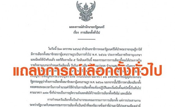 ปี 62 เลือกตั้งชัวร์ สำนักนายกฯออกแถลงการณ์เลือกตั้งทั่วไป