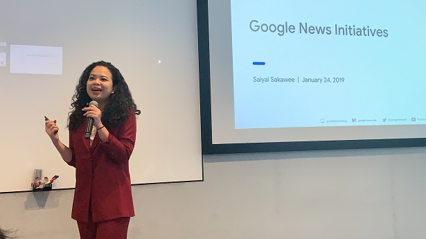 นางสาวสายใย สระกวี หัวหน้าฝ่ายสื่อสารองค์กรและมวลชนสัมพันธ์ กูเกิล ประเทศไทย กล่าวว่า เครื่องมือที่กูเกิลร่วมกับพันธมิตรในการพัฒนาและเปิดให้ใช้ฟรี โดยสามารถศึกษาได้เองผ่านเว็บไซต์ newsinitiatve.withgoogle.com โดยสามารถนำไปใช้ในการรายงานข่าวเลือกตั้งได้ โดยผู้สื่อข่าวและสำนักข่าวต้องลงทะเบียนเพื่อตรวจสอบและยืนยะน อาทิ Flourish (flourish.studio) บริการในการนำเสนอข้อมูลในการรายงานข่าวโดยใส่ข้อมูลลงไปในระบบเพื่อสร้างกราฟิกบอกเล่าเรื่องราวและรายงานข่าว สามารถอัพเดทให้ข้อมูลเปลี่ยนแปลงได้แบบเรียลไทม์ เว็บTilegrams เว็บไซต์ให้บริการนำเสนอข้อมูลกราฟิกแบบเรียลไทม์ การให้ข้อมูลให้ถึงคนมากที่สุดเป็นภารกิจหลักของกูเกิล โดยใช้แพลตฟอร์ม ของกูเกิลช่วยให้การทำข่าวง่ายขึ้น ทั้งนี้โดยกูเกิลเปิดโอกาสให้สื่อมวลชนสามารถใช้ออนไลน์คอสในการเรียนออนไลน์ในการใช้งานเครื่องมือในการรายงานข่าว วารสารศาสตร์ข้อมูล และการตรวจสอบความถูกต้อง ข่าวที่มีการเสนอผิดพลาด กูเกิล ได้ทำงานกับกลุ่มสำนักข่าวทั่วโลกเพื่อทำการตรวจสอบข่าวสารในแต่ละประเทศ กูเกิลจะมีโครงการฝึกอบรมในการตรวจสอบข่าวที่กรุงเทพฯ เชียงใหม่ และขอนแก่น การตรวจสอบความจริงกูเกิลเริ่มคุยกับสำนักข่าวเพื่อทำการตรวจสอบข่าวและให้การยืนยันด้วย IFCN @poynter โดยสื่อมวลชนสามารถไปลงทะเบียนเพื่อให้มีการตรวจสอบข่าวได้ ส่วนในยูทูปได้เปิดคุณสมบัติ Breaking News จะให้บริการในค้นหาข่าวด่วนที่สำคัญและน่าเชื่อถือ และได้รับการยืนยันแล้วจากพันธมิตรที่ตรวจสอบความน่าเชื่อถือ IFCN @poynter ในอนาคตจะเปิดให้ยริการคุณสมบัติในการตรวจสอบสำนักข่าวว่ามีความเกี่ยวข้องกับรัฐบาล รวมถึงมีคุณสมบัติในการตรวจสองบริบทของเนื้อหาเพื่อตรวจสอบความจริง สำหรับข้อสงสัยในการค้นหาข้อมูลที่มีคนสงสัยถึงการจัดลำดับสิ่งที่ค้นหา อะกอริทึมของกูเกิลให้ความสำคัญกับความเกี่ยวข้องกับประโยคที่ค้นหา และคุณภาพของเว็บไซต์ ดังนั้นการทำข่าวให้ค้นหาได้ง่ายนักข่าวต้องทำงานร่วมกับผู้ดูและเว็บไซต์เพื่อให้การค้นหาข่าวพบข่าวของเราและตรวจสอบได้ว่ามีการใช้งานกับข่าวบนเว็บไซต์นั้นนานแค่ไหน กรณีที่มีเหตุการณ์ฉุกเฉิน อะกอริทึมจะให้ความสคัญกับการค้นหาเนื้อหาข่าวเหตุการณ์นั้นๆก่อน