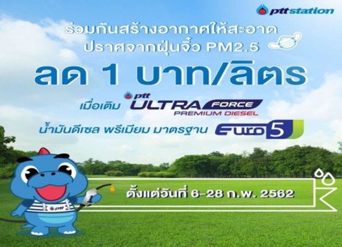 นายศิริ จิระพงษ์พันธ์ รัฐมนตรีว่าการกระทรวงพลังงาน เปิดเผยว่า จากที่กระทรวงพลังงานได้ขอความร่วมมือ บมจ.ปตท.-บางจากฯ ปรับลดราคาน้ำมันดีเซลเกรดพรีเมียม เพื่อจูงใจให้ประชาชนหันมาใช้ เพื่อช่วยลดปัญหาฝุ่น PM2.5 เพราะเป็นน้ำมันมาตรฐานยุโรประดับ 5 (ยูโร 5 ) นั้น รับทราบว่าทั้ง 2 รายประกาศปรับลดราคาลง 1 บาทต่อลิตร นับว่าเป็นข่าวดี และเป็นทางเลือกสำหรับผู้บริโภคในการร่วมแก้ไขปัญหาฝุ่นละออง ซึ่งทั้ง 2 รายใช้จากโรงกลั่นน้ำมันในประเทศที่สามารถผลิตยูโร 5 ได้ อย่างไรก็ตาม เพื่อส่งเสริมเกิดการใช้เพิ่ม ทางกระทรวงฯ จึงคาดหวังว่าหลังจากการประกาศลดสำรองน้ำมัน เพื่อให้เกิดการนำเข้าดีเซลยูโร 5 แล้ว ยอดใช้ยูโร 5 จะเพิ่มขึ้นช่วยแก้ไขปัญหาได้อีกทางหนึ่ง โดยประเทศที่ผลิตยูโร 5 ขณะนี้ เช่น สิงคโปร์ เกาหลีใต้ ญี่ปุ่น ทั้งนี้ ปตท.และบางจากฯ ประกาศลดราคาดีเซลพรีเมียมลง 1 บาทต่อลิตร มีผลตั้งแต่วันที่ 6-28 กุมภาพันธ์ ทำให้ราคาในเขตกรุงเทพฯ และปริมณฑลของ ปตท.อยู่ที่ 28.69 บาทต่อลิตร และบางจากฯ อยู่ที่ 28.96 บาทต่อลิตร โดยน้ำมันยูโร 5 ของบางจากฯ ประกอบด้วย น้ำมันแก๊สโซฮอล์ อี 20 และดีเซลพรีเมียม โดยมีการจำหน่ายดีเซลพรีเมียม 248 แห่ง จาก 1,200 แห่ง ขณะที่ ปตท.จำหน่าย 900 แห่งจากจำนวนปั๊มทั้งหมด 1,600 แห่ง นอกจากนี้ ปตท.และการไฟฟ้าฝ่ายผลิตแห่งประเทศไทย (กฟผ.) ยังได้ฉีดน้ำบนอาคาร เพื่อดักจับฝุ่นละอองช่วยบรรเทาปัญหามลภาวะทางอากาศ ในส่วนของ ปตท.ยังติดตั้งหัวฉีดสเปรย์พ่นละอองน้ำตลอดแนวรั้ว ปตท. อาคารเอ็นโก้ และสะพานลอยคนข้ามถนนวิภาวดีรังสิตอีกด้วย โดยยังคงมีแผนที่จะฉีดน้ำอย่างต่อเนื่อง เพื่อช่วยบรรเทาปัญหาอีกด้วย ส่วน กฟผ.ติดตั้งระบบพ่นละอองไอน้ำ 1,000 หัว ติดอยู่บริเวณรอบดาดฟ้าของอาคาร ท.102 ที่เป็นอาคารสูง 20 ชั้น ใช้น้ำประปาที่ผ่านเครื่องกรองมาฉีดพ่น โดยระบบดังกล่าวจะทำงาน 2 ช่วงเวลา คือ ช่วงเช้าและบ่าย ช่วงละ 4-5 ชั่วโมง.
