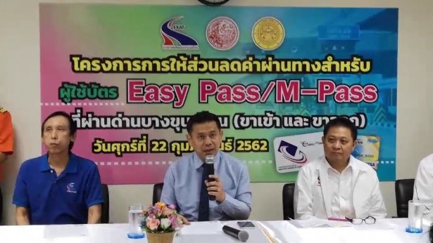 นายสุชาติ ชลศักดิ์พิพัฒน์ ผู้ว่าการ การทางพิเศษแห่งประเทศไทย เปิดเผยถึงการให้ส่วนลดค่าผ่านทางสำหรับผู้ใช้บัตร Easy Pass และบัตร M - Pass ที่ผ่านด่านเก็บค่าผ่านทางพิเศษบางขุนเทียน 1 (ขาเข้า) และด่านฯ บางขุนเทียน 2 (ขาออก) จำนวน 5 บาท/เที่ยว ตามนโยยายของกระทรวงคมนาคมที่ให้การทางพิเศษแห่งประเทศไทย (กทพ.) พิจารณามาตรการสนับสนุนในการใช้บัตรดังกล่าว โดยมี นายดำเกิง ปานขำ รองผู้ว่าการฝ่ายปฏิบัติการ กทพ. ร่วมแถลงข่าวด้วย ทั้งนี้ การให้ส่วนลด 5 บาท/เที่ยว ที่ด่านฯ ดังกล่าวจะเริ่มตั้งแต่วันจันทร์ที่ 25 กุมภาพันธ์ 2562 เป็นต้นไป โดยในเบื้องต้นกำหนดให้ส่วนลด เป็นเวลา 30 วัน จนถึงวันที่ 26 มีนาคม 2562 ผู้ว่าการ กทพ. เปิดเผยว่า ตามที่คณะอนุกรรมการเทคโนโลยีดิจิทัล เพื่อการให้บริการและการบริหารจัดการองค์กรของ กทพ. ที่มีนายปกรณ์ อาภาพันธุ์ เป็นประธานฯ ได้ให้ข้อสังเกตว่าหาก กทพ.ต้องการเพิ่มผู้ใช้บัตร Easy Pass ควรพิจารณาให้ส่วนลดค่าผ่านทางแบบเดียวกับด่านเก็บค่าผ่านทางพิเศษอโศก 4 เมื่อปลายปีที่แล้ว ที่ให้ส่วนลดแก่ผู้ใช้บัตร Easy Pass และบัตร M - Pass จำนวน 5 บาท/เที่ยว จาก 50 บาท เหลือ 45 บาท โดยให้ กทพ.พิจารณาคัดเลือกด่านฯ ที่มีความเหมาะสมในการดำเนินการ และต่อมานายอาคม เติมพิทยาไพสิฐ รัฐมนตรีว่าการกระทรวงคมนาคม ได้สั่งการในการประชุมทางไกลหน่วยงานในสังกัดกระทรวงคมนาคมให้ กทพ.พิจารณามาตรการสนับสนุนในการใช้บัตร Easy Pass และ M-Pass โดยให้ส่วนลดแก่ผู้ใช้บัตรที่ด่านฯ บางขุนเทียนจะช่วยในการลดปัญหาจราจรติดขัดหน้าด่าน และยังจะช่วยลดมลพิษทางอากาศลงได้ เนื่องจากขณะนั้นประสบปัญหาฝุ่นละออง PM 2.5 ค่อนข้างรุนแรง จึงเป็นที่มาในการให้ส่วนลดค่าผ่านทางในครั้งนี้ “ปัจจุบันมีผู้ใช้บัตร Easy Pass และบัตร M - Pass ผ่านด่านฯ บางขุนเทียน ทั้ง 2 ทิศทาง เฉลี่ยวันละ 20,460 คัน จากยอดผู้มีบัตร Easy Pass ทั้งหมดกว่า 1.65 ล้านบัตร คาดว่าในช่วงระยะเวลาการให้ส่วนลดค่าผ่านทางระหว่างวันที่ 25 กุมภาพันธ์ – 26 มีนาคม 2562 จำนวน 30 วัน จะส่งผลให้มียอดผู้สมัครใช้บัตร Easy Pass และบัตร M - Pass เพิ่มขึ้น จึงขอเชิญชวนให้ผู้ใช้บริการที่ชำระค่าผ่านทางด้วยเงินสดหันมาใช้บัตร Easy Pass และบัตร M - Pass กันเยอะ ๆ เพราะนอกจากจะได้รับความสะดวกสบายในการผ่านทางพิเศษแล้วจะมีส่วนช่วยลดปัญหาจราจรติดขัดหน้าด่านฯ ช่วยลดมลพิษทางอากาศลงได้อีกด้วย” นายสุชาติ กล่าว.