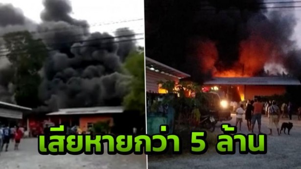 ไฟไหม้โรงรมยางวอด เสียหายกว่า 5 ล้านบาท ที่ อ.สิชล Credit Picture by Thairath