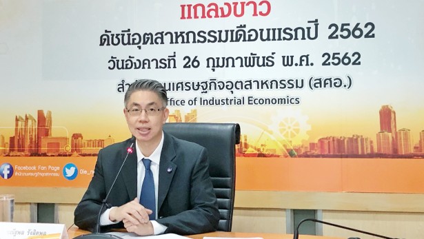 นายณัฐพล รังสิตพล ผู้อำนวยการสำนักงานเศรษฐกิจอุตสาหกรรม (สศอ.) เปิดเผยว่า สศอ.ได้พัฒนาดัชนีผลผลิตอุตสาหกรรม (MPI) ครอบคลุมสำมะโนอุตสาหกรรมเพิ่มมากขึ้น จากเดิมร้อยละ 61.50 เพิ่มเป็นครอบคลุมร้อยละ 64.20 โดยเพิ่มผลิตภัณฑ์ใช้ในการคำนวณใหม่ 24 รายการใน 3 กลุ่มผลิตภัณฑ์ ทำให้สามารถสะท้อนโครงสร้างอุตสาหกรรมไทยมากขึ้น นอกจากนี้ ยังเปลี่ยนปีฐานการคำนวณจากปี 2554 มาเป็นปี 2559 เพื่อให้มีความครอบคลุมและสะท้อนโครงสร้างอุตสาหกรรมปัจจุบันมากขึ้น ทั้งนี้ ประมาณการว่าดัชนีผลผลิตอุตสาหกรรมและจีดีพีอุตสาหกรรมตลอดปีนี้จะขยายตัวร้อยละ 2-3 เมื่อเทียบกับช่วงเดียวกันปีที่ผ่านมา สำหรับดัชนีผลผลิตอุตสาหกรรมเดือนมกราคม 2562 ขยายตัวร้อยละ 0.18 ต่อเนื่องเป็นเดือนที่ 4 เมื่อเทียบกับช่วงเดียวกันปีที่ผ่านมา ด้านอัตราการใช้กำลังการผลิตอยู่ที่ร้อยละ 70.47 สะท้อนความมีเสถียรภาพต่อเนื่องของเศรษฐกิจไทย สำหรับอุตสาหกรรมสำคัญที่ส่งผลบวกต่อดัชนีผลผลิตอุตสาหกรรม ได้แก่ รถยนต์เพิ่มขึ้นร้อยละ 8.69 จากช่วงเดียวกันปีที่ผ่านมา เครื่องปรับอากาศ เพิ่มขึ้นร้อยละ 15.94 จากช่วงเดียวกันปีที่ผ่านมา น้ำตาลเพิ่มขึ้นร้อยละ 3.56 จากช่วงเดียวกันปีที่ผ่านมา น้ำมันปิโตรเลียม เพิ่มขึ้นร้อยละ1.59 จากช่วงเดียวกันปีที่ผ่านมา และยา เพิ่มขึ้น ร้อยละ 9.51 จากช่วงเดียวกันปีที่ผ่านมา ส่วนผลกระทบเชิงลบ ได้แก่ มอเตอร์ไฟฟ้าการผลิตลดลงร้อยละ 22.45 เมื่อเทียบกับช่วงเดียวกันปีที่ผ่านมา คอมพิวเตอร์ HDD การผลิตลดลงร้อยละ 11.10 เหล็กและเหล็กกล้า การผลิตหดตัวลงร้อยละ 7.6 เมื่อเทียบกับช่วงเดียวกันปีที่ผ่านมา เส้นใยสิ่งทอ การผลิตหดตัวลงร้อยละ 5.1 ผ้าผืนหดตัวลงร้อยละ 3.5 การผลิตยางรถยนต์ หดตัวร้อยละ 0.5 ยางรถจักรยานยนต์ จักรยาน ลดลงร้อยละ 11.22 เมื่อเทียบกับช่วงเดียวกันปีที่ผ่านมา ขณะที่สงครามการค้าที่ชะลอลงนั้น ทำให้ภาพเริ่มมีความชัดเจนมากขึ้นในอุตสาหกรรมต่าง ๆ ทั้งด้านบวกและลบ ส่งผลให้เริ่มมีนักลงทุนจากจีนย้ายฐานการผลิตเข้ามาในไทยมากขึ้น แต่การส่งออกได้รับผลกระทบ เช่น เม็ดพลาสติก จีนมีการนำเข้าจากไทยลดลงส่งผลให้ราคาลดลง.