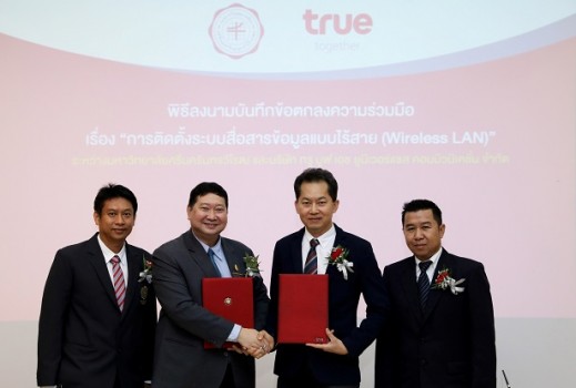 รองศาสตราจารย์ ดร.สมชาย สันติวัฒนกุล อธิการบดีมหาวิทยาลัยศรีนครินทรวิโรฒ (มศว) ร่วมลงนามบันทึกข้อตกลงความร่วมมือกับ นายพิรุณ ไพรีพ่ายฤทธิ์ ผู้อำนวยการด้านภาครัฐและภาคการศึกษา บมจ. ทรู คอร์ปอเรชั่น ในการติดตั้งและวางระบบการสื่อสารข้อมูลแบบไร้สาย (Wireless Lan) ครอบคลุมพื้นที่การให้บริการ ทั่วมหาวิทยาลัยศรีนคริทรวิโรฒทั้ง ประสานมิตร องครักษ์ และศูนย์การแพทย์สมเด็จพระเทพรัตนราชสุดาฯ สยามบรมราชกุมารี เพื่อเปิดโลกการเรียนรู้ให้นักศึกษาสามารถเข้าถึงข้อมูลข่าวสารและเชื่อมโยงองค์ความรู้ต่างๆจากทั่วโลกได้อย่างสะดวก รวดเร็ว ผ่านโครงข่ายอินเทอร์เน็ตไร้สายความเร็วสูง WiFi by TrueMove H ที่เร็วที่สุดและครอบคลุมพื้นที่มากที่สุด ซึ่งจะเป็นปัจจัยพื้นฐานที่สำคัญของมหาวิทยาลัยในการเพิ่มศักยภาพเพื่อขับเคลื่อนระบบการศึกษาในยุคดิจิทัล ให้พร้อมก้าวสู่ Smart University อย่างเต็มรูปแบบ