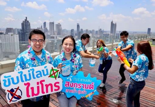 นางสาวทิพยรัตน์ แก้วศรีงาม รองประธานเจ้าหน้าที่บริหาร กลุ่มการขายและงานบริการ บริษัท โทเทิ่ล แอ็คเซ็ส คอมมูนิเคชั่น จำกัด (มหาชน) หรือดีแทค พร้อมด้วยร้านค้าตัวแทนจำหน่าย ร่วมฉลองสงกรานต์ปีใหม่ไทย ขอให้ประชาชนเดินทางปลอดภัย และมีความสุขในช่วงวันหยุดยาวนี้ สำหรับลูกค้าดีแทค ที่มาทำธุรกรรมที่ศูนย์บริการดีแทค ในช่วงเทศกาลสงกรานต์ ดีแทคแจกซองใส่มือถือกันน้ำ เพื่อให้ลูกค้าใช้มือถือได้อย่างไร้กังวลและสนุกสนาน เพียงแค่ชำระค่าบริการรายเดือน 500 บาทขึ้นไป หรือ ซื้อสมาร์ทโฟนรุ่นใดก็ได้ พร้อมสมัครแพ็กเกจแบบรายเดือน หรือ เปิดเบอร์ใหม่-ย้ายค่ายเบอร์เดิม พร้อมสมัครแพ็กเกจแบบรายเดือนมูลค่า 500 บาทขึ้นไป ตั้งแต่วันนี้ เป็นต้นไป หรือจนกว่าของจะหมด สำหรับลูกค้า BLUE MEMBER และ เพียงกด *140# โทรออก แล้วแสดงข้อความบนหน้าจอมือถือเพื่อรับสิทธิ์ ที่ศูนย์บริการดีแทคทุกสาขาทั่วประเทศ