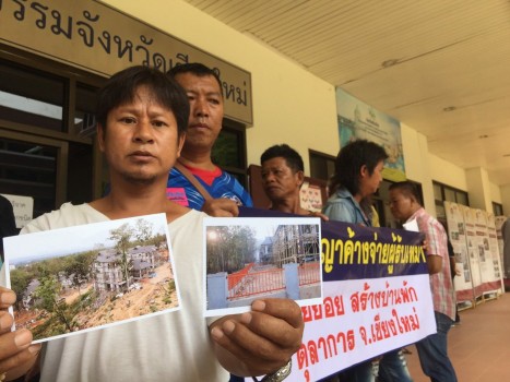 กลุ่มผู้ประกอบการรับเหมาก่อสร้างรายย่อยรวมตัวที่ศูนย์ดำรงธรรมจังหวัดเชียงใหม่ Picture by Matichon