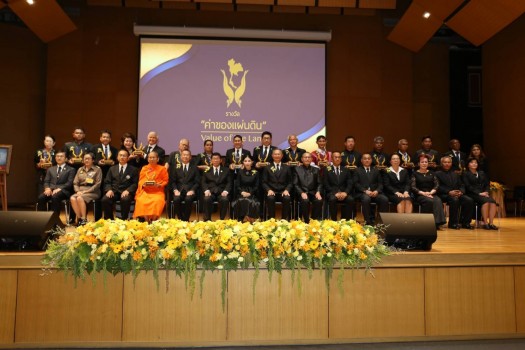 สำนักงานปลัดสำนักนายกรัฐมนตรี (สปน.) จัดพิธีมอบรางวัล “ค่าของแผ่นดิน” (Value of the Land : Pride of Dignity of Thais) ให้แก่ 16 บุคคล องค์กร และชุมชน ที่มุ่งมั่นเสียสละอุทิศใจและกายกระทำการที่ก่อให้เกิดประโยชน์แก่ประชาชน สังคม และประเทศชาติ ด้วยความสมัครใจไม่หวังสิ่งตอบแทนใด ๆ ในลักษณะจิตอาสา ยึดมั่นในคุณงามความดี มีความซื่อสัตย์สุจริต และได้กระทำมาอย่างต่อเนื่องจนเกิดผลที่เป็นรูปธรรม และเป็นที่ประจักษ์ยอมรับของสังคม โดยการน้อมนำศาสตร์พระราชามาประพฤติปฏิบัติตามรอยพระยุคลบาทของ พระบาทสมเด็จพระบรมชนกาธิเบศร มหาภูมิพลอดุลยเดชมหาราช บรมนาถบพิตร