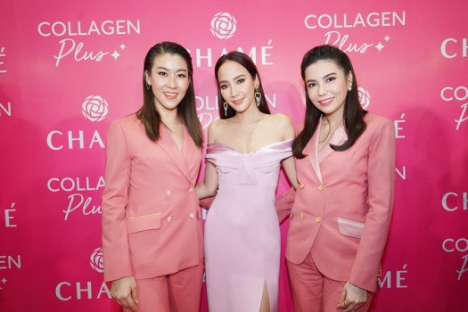 ส่วนทางด้าน พรีเซนเตอร์ “อั้ม–พัชราภา” เผยว่าเชื่อว่าหลายคนคงจะทราบกันดีว่า ‘อั้ม’เป็นคนใส่ใจในการดูแลเรื่องสุขภาพผิวพรรณมากๆ จนมาวันหนึ่งเราก็ได้รู้จักผลิตภัณฑ์ CHAME’ Collagen Plus ที่มี‘การ์ตูน -นันท์ฐณิชา และ เชียร์ - ฑิฆัมพร’ เป็นผู้บริหารถึงแม้ว่าเรารู้จักกัน แต่ก่อนที่จะตัดสินใจรับเป็นพรีเซนเตอร์ อั้มต้องลองและศึกษาก่อนพอมั่นใจว่าดีก็ตัดสินใจรับทันที รวมทั้งประสบการณ์ที่ผ่านมา 9 ปีของCHAME’ (ชาเม่) เลยมีความเชื่อมั่นมากขึ้น อีกทั้งผลิตภัณฑ์ที่คัดสรรและผ่านการค้นคว้ามาอย่างดีและได้รับการรับรองต่างๆ มากมาย ซึ่งพอเราได้ลองใช้ก็เห็นถึงความเปลี่ยนแปลงมีผิวขาวใสเนียนและเด้งเลยอยากจะบอกต่อแนะนำเคล็ดลับนี้ให้กับสาวๆด้วย “ชาเม่ คอลลาเจน พลัส แก้วนี้ ที่อั้มดื่มทุกวัน”