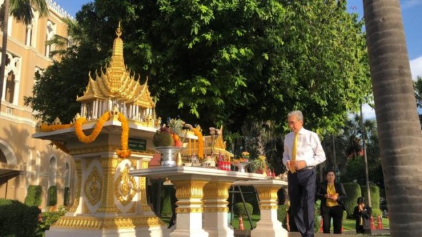 รัฐมนตรีประจําสํานักนายกรัฐมนตรีสักการะสิ่งศักดิ์สิทธิ์ในทำเนียบรัฐบาล