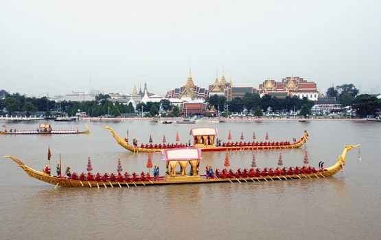 กองทักเรือฝึกฝีพายในริ้วขบวนพยุหยาตราทางชลมารค