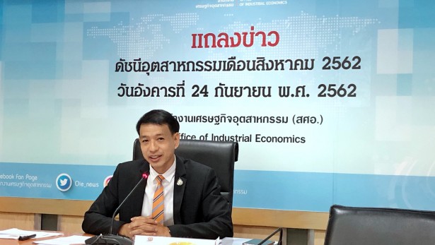 การค้าโลกที่ชะลอตัวจากสงครามการค้าที่ขยายตัวออกไปรวมทั้งผลจากเงินบาทที่แข็งค่าขึ้นร้อยละ 5.8 การส่งออกสินค้าอุตสาหกรรมที่ลดลง ฉุดดัชนีผลผลิตอุตสาหกรรม เดือน ส.ค. 62 ลดลงต่อเนื่องเป็นเดือนที่ 4 อยู่ที่ระดับ 100.58 หดตัวลงร้อยละ 4.4 นายอดิทัต วะสีนนท์ รองผู้อำนวยการสำนักงานเศรษฐกิจอุตสาหกรรม (สศอ.) แถลงดัชนีผลผลิตอุตสาหกรรม หรือ Manufacturing Production Index - MPI ประจำเดือน ส.ค. 62 ว่า ดัชนีผลผลิตอุตสาหกรรม ลดลงต่อเนื่องเป็นเดือนที่ 4 อยู่ที่ระดับ 100.58 หดตัวลงร้อยละ 4.4 เมื่อเทียบกับช่วงเดียวกันปีที่ผ่านมา สาเหตุหลักจากผลกระทบจากเศรษฐกิจที่ชะลอตัวและสงครามการค้าโลกจีนและสหรัฐและขยายตัวออกไปในวงกว้าง รวมทั้งผลจากเงินบาทที่แข็งค่าขึ้นร้อยละ 5.8 ส่งผลที่ทำให้การค้าโลกชะลอตัวต่อเนื่อง ส่งผลกระทบทำให้คำสั่งซื้อจากตลาดต่างประเทศชะลอตัวลง ส่งผลให้การส่งออกสินค้าอุตสาหกรรม ไม่รวมทองคำ หดตัวลงร้อยละ 9.2 เมื่อเทียบกับช่วงเดียวกันปีที่ผ่านมา ส่วนปัจจัยที่จะส่งผลต่อดัชนีผลผลิตอุตสาหกรรมเดือนก.ย.62 ยังคงเป็นผลจากสงครามการค้า ค่าเงินบาท ภาวะการนำเข้าสินค้าวัตถุดิบและกึ่งวัตถุดิบ สศอ.เชื่อว่า มาตรการกระตุ้นเศรษฐกิจวงเงิน 316,000 ล้านบาท ซึ่งรวมทั้งมาตรการ ชิป ช้อป ใช้ จะช่วยให้เกิดเงินหมุนเวียนในระบบเศรฐษกิจได้ประมาณ 40,000-50,000 ล้านบาท ก็จะมีส่วนช่วยกระตุ้นเศรษฐกิจระยะสั้นไม่ให้ชะลอตัวลงไปมากกว่านี้ สำหรับสถานการณ์น้ำท่วมภาคอีสานส่งผลกระทบ 2 ล้านไร่ กรณีนี้จะไม่ส่งผลกระทบต่ออุตสาหกรรมอาหารเนื่องจากพืชที่ได้รับผลกระทบหลักคือ ข้าว อุตสาหกรรมที่ส่งผลลบต่อดัชนีผลผลิตอุตสาหกรรม เดือน ส.ค. 62 ได้แก่ รถยนต์และเครื่องยนต์ ลดลงร้อยละ 8.21 เมื่อเทียบกับช่วงเดียวกันปีที่ผ่านมา ชิ้นส่วนอิเล็กทรอนิกส์ หดตัวลงร้อยละ 4.1 เมื่อเทียบกับช่วงเดียวกันปีที่ผ่านมา ผลิตภัณฑ์ยางอื่นๆ เช่นถุงมือยางถุงมือตรวจลดลงร้อยละ 21.26 เหล็กและเหล็กกล้าขั้นมูลฐาน และนำ้ตาล อุตสาหกรรมที่การผลิตยังขยายตัวดีได้แก่ ฮาร์ตดิส ไดร์ท เนื่องจากมีคำสั่งซื้อเพิ่มขึ้นร้อยละ 12.66 จากช่วงเดียวกันปีที่ผ่านมา เพราะฐานการผลิตในประเทศมาเลเซียปิดตัวลง อาหารทะเลแช่แข็ง ขยายตัวเพิ่มขึ้นร้อยละ 14.04 จากช่วงเดียวกันปีก่อน เนื่องจากผลิตภัณฑ์ปลา กุ้งและปลาหมึกแช่แข็ง มีคำสั่งซื้อจากตลาดในประเทศเพิ่มขึ้น ประกอบกับผู้ผลิตได้ขยายตลาดไปสู่ตลาดการค้าขายปลีกสมัยใหม่และร้านอาหารขนาดใหญ่ รวมถึงเพิ่มช่องทางจัดจำหน่ายในตลาดออนไลน์ในกลุ่มผลิตภัณฑ์อาหารพร้อมรับประทานมากขึ้น น้ำดื่ม ขยายตัวเพิ่ม