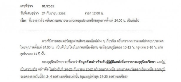กรมอุตุนิยมวิทยา ชี้แจง เรื่องคลื่นความหนาวปกคลุมประเทศไทย