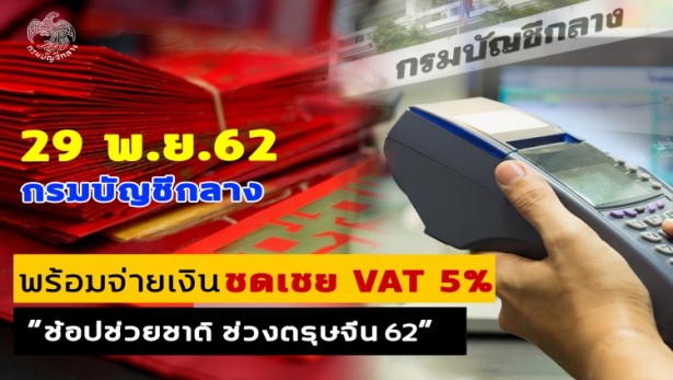 กรมบัญชีกลางเตรียมจ่ายเงินชดเชย Vat 5% จากมาตรการช็อป ช่วย ชาติ ช่วง ตรุษจีน 62
